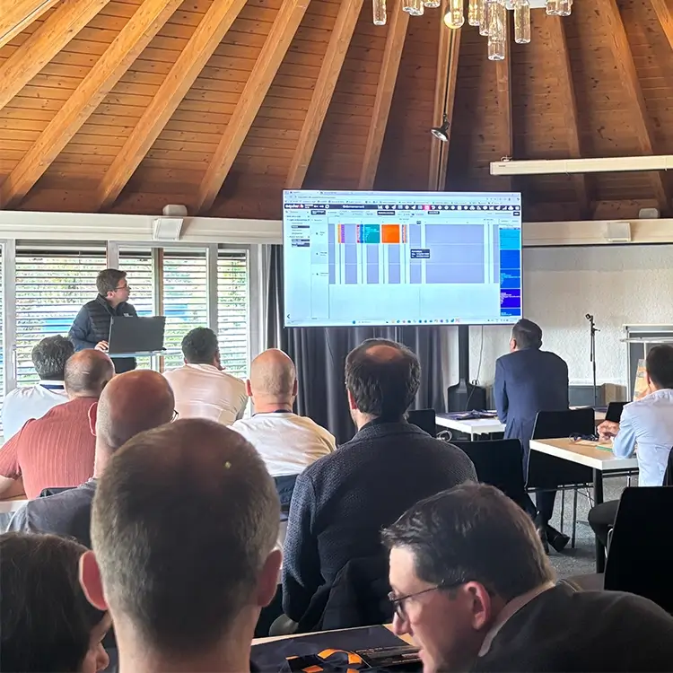 La matinée a débuté par une présentation des fonctionnalités phares du module Aquiordo de Aquiweb, véritable atout pour les responsables de production. Interfacé avec l’ERP, ce module permet de gérer la planification en tenant compte de multiples contraintes : charge des postes de travail, capacité machine, disponibilité des ressources…